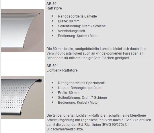 - Die Außenraffstore AR 80 L eignet sich bestens für Computer-Arbeitsplätze